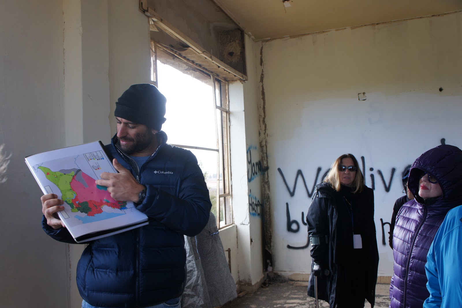 Following breakfast, we departed for Kibbutz Meron HaGolan, where we will meet Ilan Shulman, a company commander in a reserve Paratroop Battalion,  with a MA degree  in Mideast Studies.   We  explored the Kunetra Valley, with it lush orchards fields, and panoramic view of Syria, in 4X4 jeeps to learn about complexities of the region – the  geopolitical nature of the region.  And, they are complex!