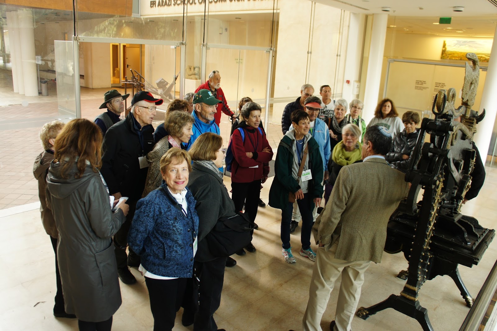 spoke with us about admissions and how they look into what kids have done in the past. In Israel, they go to college after 3 years in the army, so their army experience counts a lot. He was charming and funny and he joined our guide to stay with us the rest of the afternoon. Next we went into a beautiful lecture hall to listen to a lecture on Turkey……interesting, After the lecture, was
