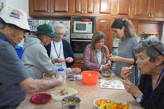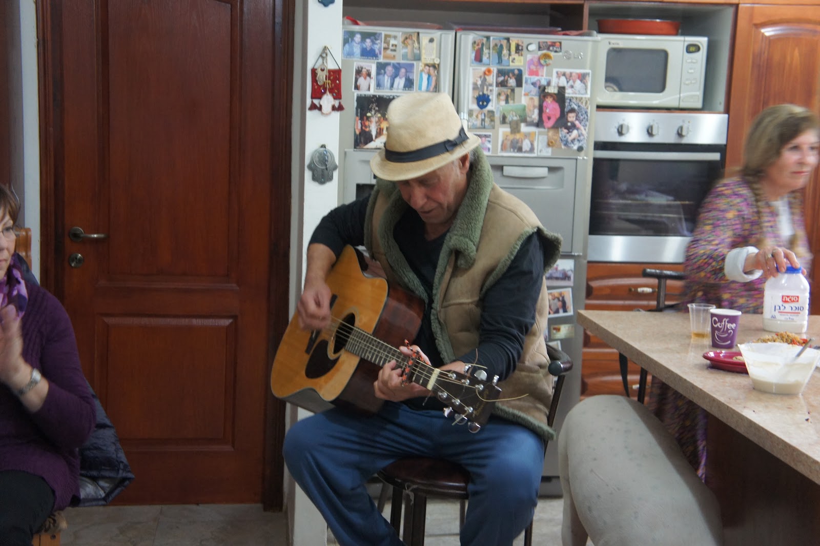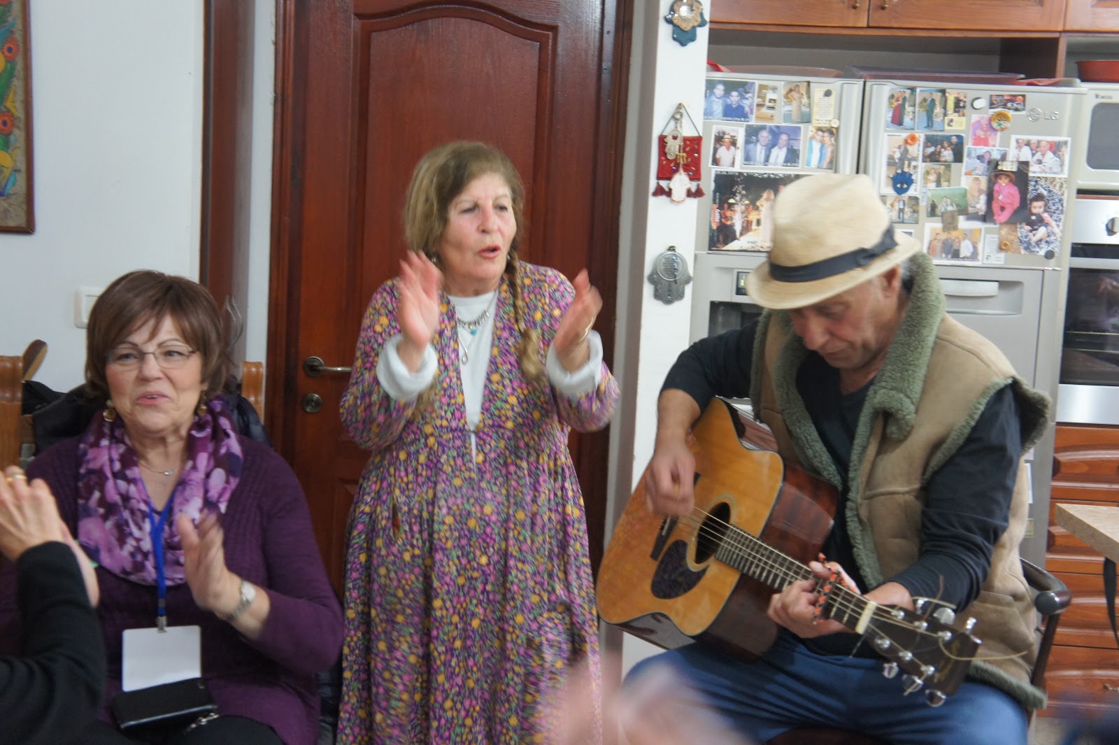 Together, with the help of XXX we made a special pastry. Sondra was busy frying up the these tasty items. We also enjoyed the guitar playing and we all joined singing songs. We concluded our visit with Hatikva – how appropriate.
