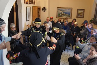 They were in traditional costume and before you knew it, Jerry and Fern too were dressed in the Yemenite costumes and dancing to the drumming and Yemenite music. Great pictures taking! Mazel gave us a cooking demonstration explaining the different spices and prepared foods.