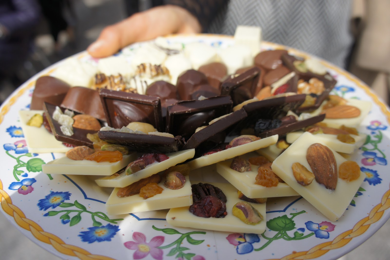 We walked down the small alleyways, along cobblestone walls, down many steps, past charming houses until we arrived at the center of town and a stop at the homemade chocolate shop. Oh yummy!