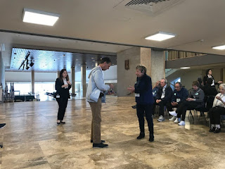 We are ready to enter and meet our guide. She was fabulous – one of the best. Our hour plus tour included a description of the Chagall tapestries, explanation of how the Knesset operates, a Committee room and the Knesset Chamber. All very impressive!