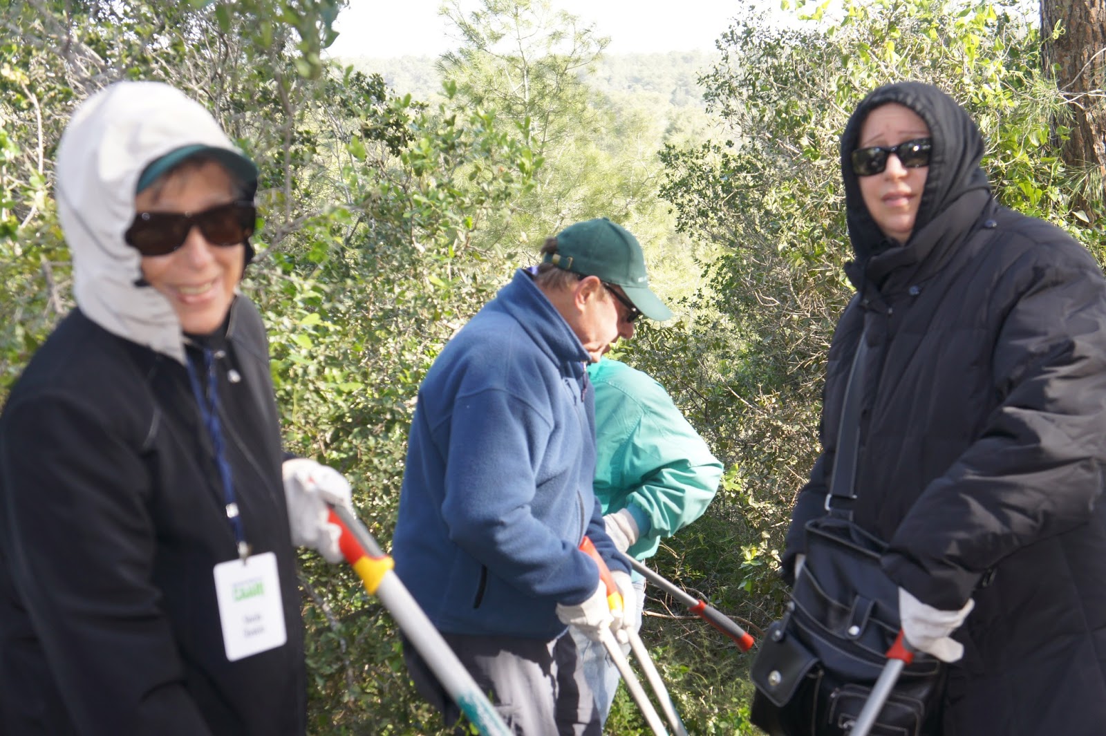 JNF FOREST DAY – The winds were blowing – really blowing, but that didn’t stop CAARI from working in the Carmel Forest.  Two years ago, this forest was ravished by a tragic fire and still today foresters and volunteers are working to clean up the forest.  We arrived the same time that 4 buses of high school students arrived.  However, our forester, Alon, told us that the teenagers thought it was too windy and left.  Not CAARI – we worked on and cleared out a section of the forest.  See below!