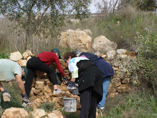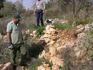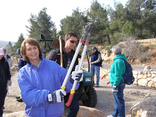 For years and years – for celebrations and in memory of all loved ones – all of us have had trees planted in the JNF forests in Israel. Today, we had the opportunity to see some of the millions of trees that have been planted – what a view. We drove to an area called Sataf, which is one of the Jewish National Fund’s forests. This 250 acre site is the site where ancient agriculture is practiced as it was thousands of years ago and CAARI was going to do some of that work. We met with the forester who gave us an overview of the beautifully terraced site, most of which are planted with olive trees. We put on our work gloves, grabbed a hoe, cutters and off to work we went. We trimmed the olive trees, preparing them for a better harvest. Some of us worked on repairing the stone terraces. What hard work – first we had to take down the old stones, separate them and then rebuild. It took some time, but with the guidance of our JNF forester, Jamil, we did it. Check out the pictures – we are really proud of what we accomplished.
